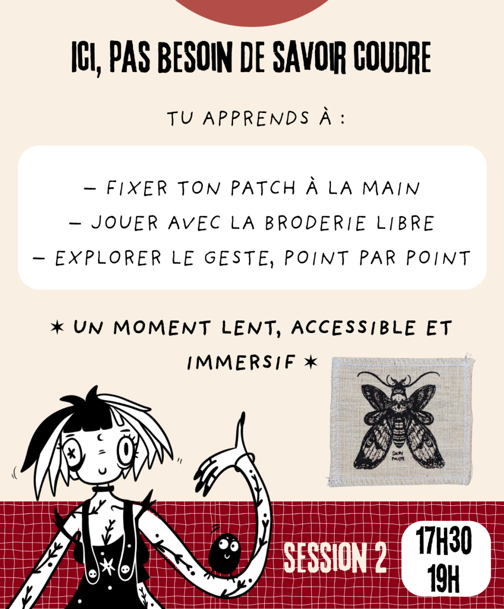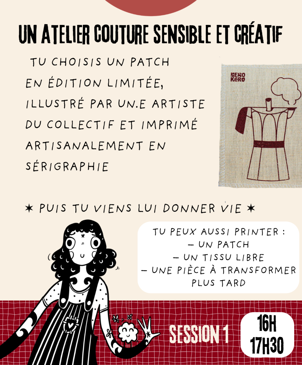 Au programme : couture à la main, broderie libre et personnalisation à partir de patchs sérigraphiés en édition limitée.