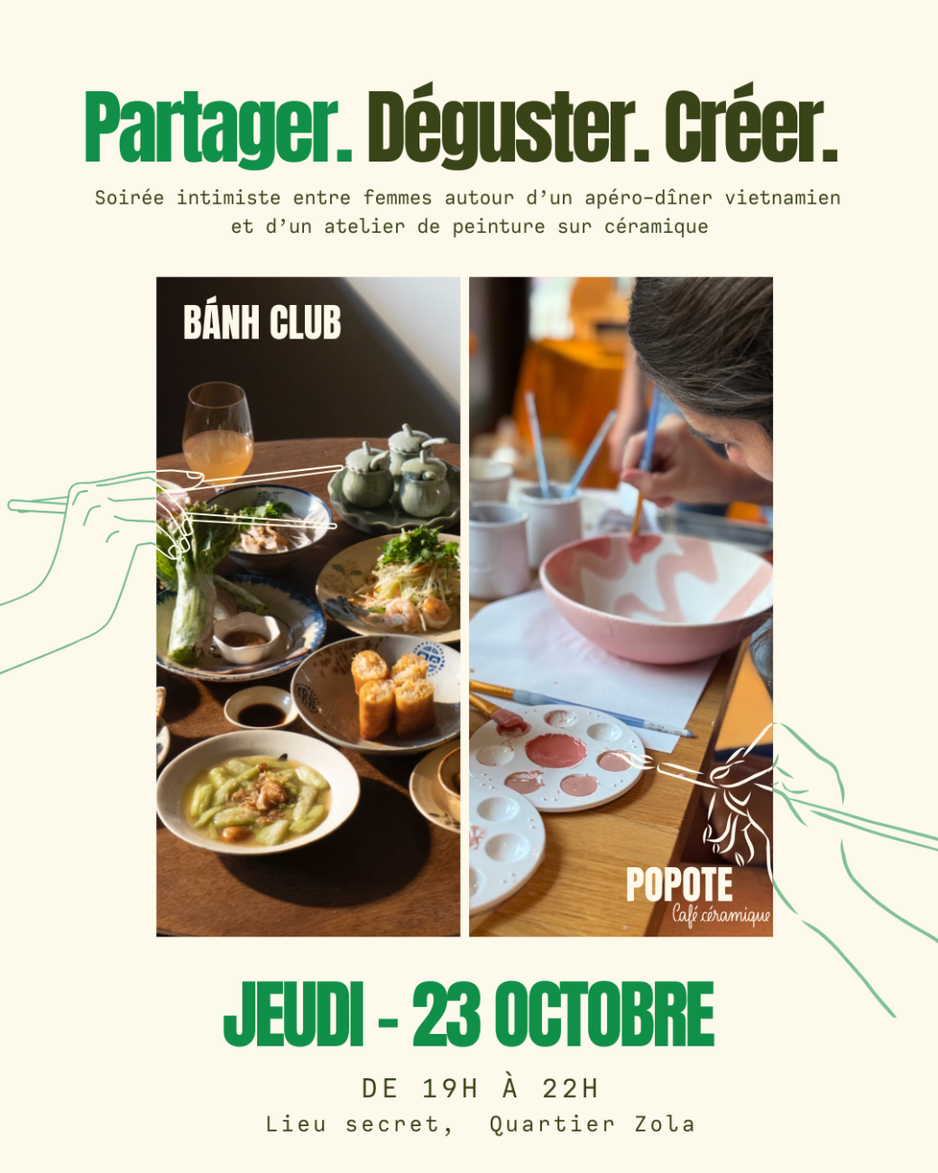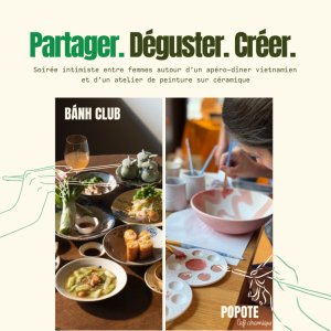 Anne de Bánh Club, vous fera voyager à travers la gastronomie vietnamienne revisitée. Elle proposera un repas en mode tapas à partager, formule unique à 25€ incluant un verre de vin ou soft. Un apéro-dîner convivial, sous le signe du partage, où les saveurs authentiques du Vietnam éveillent les papilles.