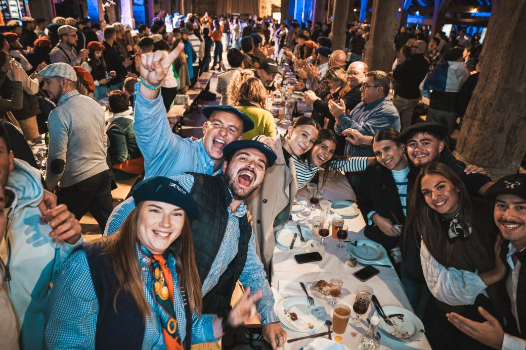 Toutes les tables seront disposées de manière à former de grandes tablées continues, afin que nous soyons tous ensemble pour partager ce moment festif. Cependant, afin d'assurer un service fluide et efficace, les repas et le vin seront servis par tranche de 8 personnes.
