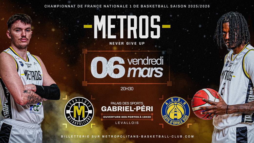 2026-03-06 20:30:002026-03-06 23:30:00Europe/ParisBASKETBALL NM1 - LEVALLOIS METROPOLITANS BC vs BERCKReservations on : https://www.billetweb.fr/basketball-nm1-levallois-metropolitans-bc-vs-berck