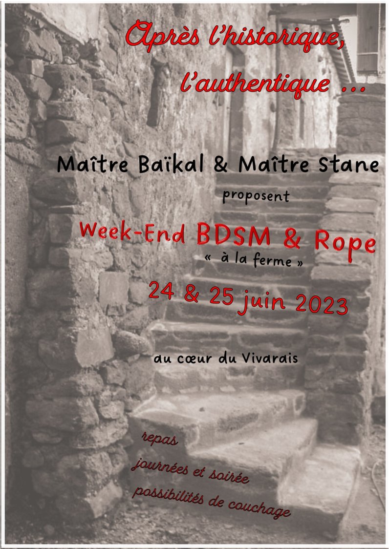 Dans un nouveau lieu du XVIIe siècle, chargé d’Histoire, de vie et d’un charme pastoral, venez partager 24h de BDSM