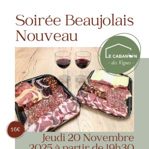 Le jeudi 20 novembre à partir de 19h00, on vous accueille pour notre première soirée dégustation — un moment de partage autour du vin nouveau, dans l’ambiance conviviale du Cabanon.