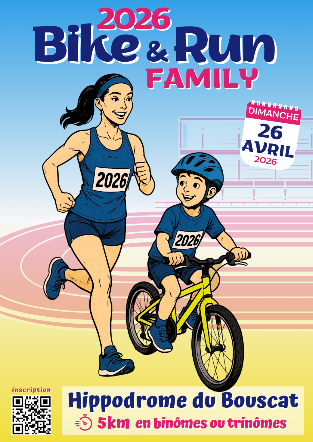Depuis 2017, le Bike and Run Family réunit chaque année plusieurs centaines de familles (adultes qui courent, enfants à vélo) sur un parcours chronométré de 5 km au cœur de l’Hippodrome de Bordeaux.