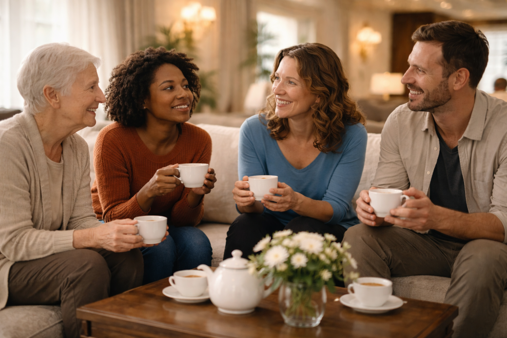 autour d’une boisson chaude,