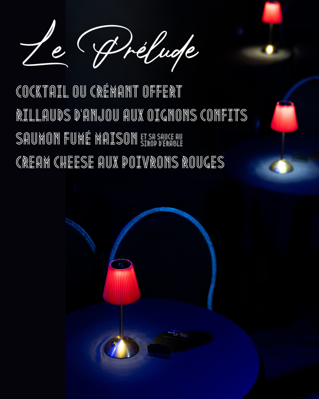 19h : Ouverture des portes, cocktail, premier et second service, showcase avec les artistes et ambiance speakeasy