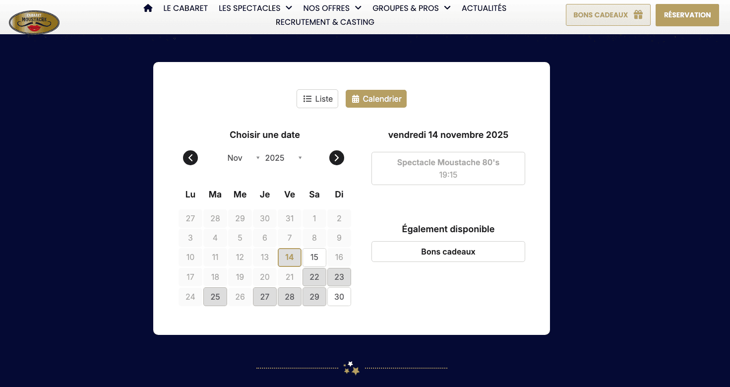 Exemple du Cabaret Moustache : https://www.cabaret-moustache.fr/reservation/
