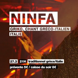 Nous aurons la chance d'accueillir la talentueuse NINFA pour un concert de chant griko ce vendredi 27 mars à l'occasion de notre festival d'anniversaire.
