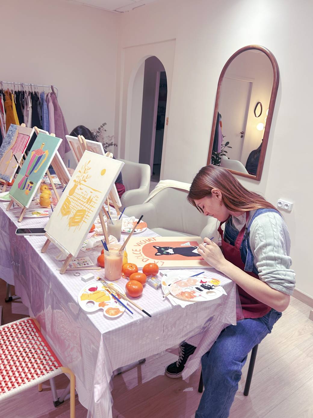Côté DRAW : Pas besoin d’apporter quoi que ce soit, on s’occupe de tout ! Toiles, pinceaux, peintures, et autres accessoires sont fournis pour que tu puisses laisser libre cours à ton imagination. Et bien sûr, tu repartiras avec ta création sous le bras !