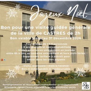 BON CADEAU POUR UNE VISITE GUIDEE GENERALE CASTRES (TARN) d'une durée de 2H.