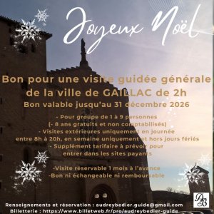 BON CADEAU POUR UNE VISITE GUIDEE GENERALE GAILLAC (TARN) d'une durée de 2H.
