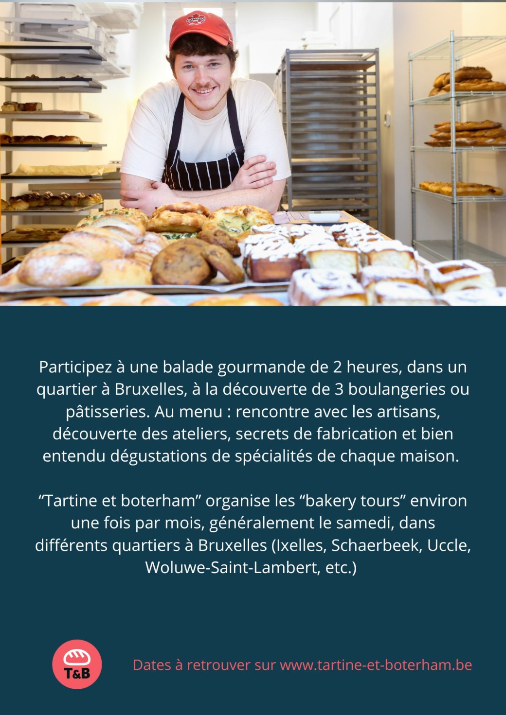Au cours de l'année 2026, nous proposerons 1 "bakery tour" par mois (habituellement le samedi) à : Ixelles (Châtelain, Vanderkindere, Flagey), Uccle (Place de Saint-Job), Schaerbeek, Woluwe-Saint-Lambert ou encore Saint-Gilles (haut et parvis), et probablement d'autres lieux.