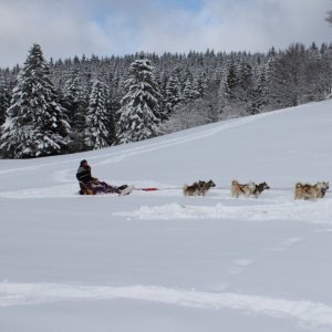 Baptême Chiens de Traîneau dans les Vosges pour la saison d'hiver 2026 pour 3 personnes. Séance de une heure dix environ comprenant une partie culturelle, des interactions avec les chiens et une balade embarquée d'une quarantaine de minutes. Réservation obligatoire par SMS au 06 08 17 56 85 le plus tôt possible.
