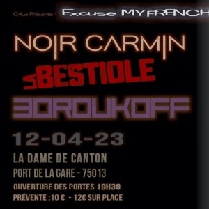 Noir Carmin, c’est la fusion de plusieurs univers. Ce duo parisien se joue des étiquettes et s’amuse à mélanger ses influences allant de la pop des années 80, au trip hop, en passant par la new wave ou la variété française (non ce n’est pas un gros mot ! ). Sombre et lumineuse à la fois, la musique de Noir Carmin sur scène, nous transporte d’un dance floor à un monde plein d’émotions.