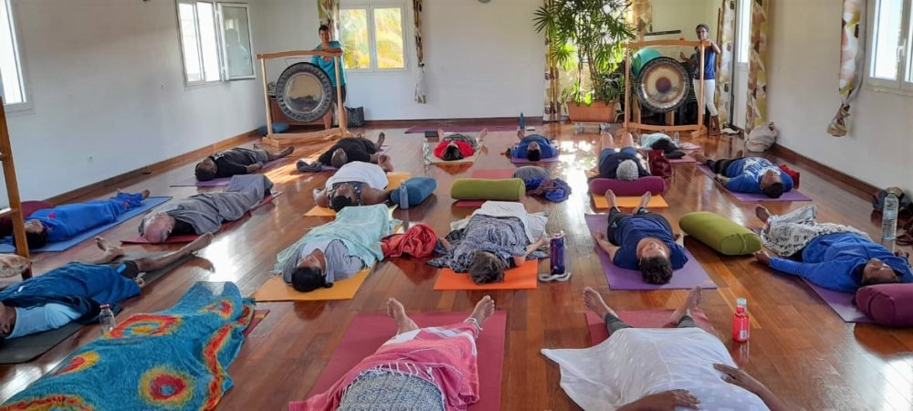 Après cette préparation, les participants s'allongent confortablement sur leurs tapis de yoga, ou un autre lieu agréable pour s'allonger et se détendre. Pour les frileux un châle ou une couverture seront nécessaires.