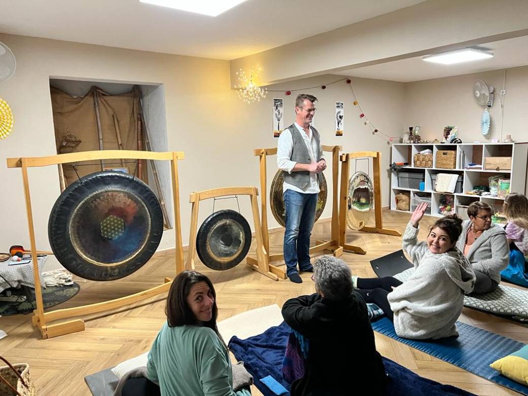 Pendant le voyage sonore, j’utilise 3 gongs ainsi que des bols chantants en cristal. Chaque instrument a sa propre fréquence et vibration.