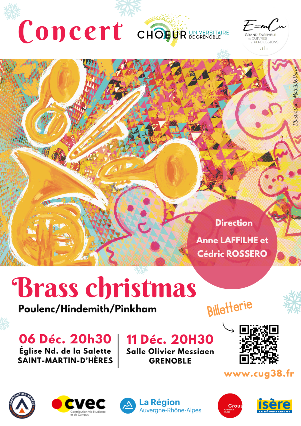 Pour ses concerts d’hiver, le Chœur Universitaire de Grenoble se joint aux cuivres de l’ensemble E=MCU pour célébrer ses 80 ans et les fêtes de Noël.