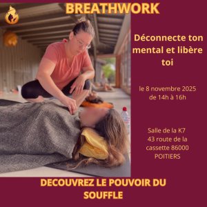 Le breathwork regroupe plusieurs technique de respiration consciente et connectée, qui libère les tensions physiques, mentales et émotionnelles. En une séance, viens libérer tes émotions, détendre son système nerveux et retrouver un apaisement profond.
