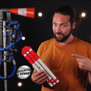 Nicolas Bras crée autour de ses instruments DIY, un folklore imaginaire et ouvre une fenêtre ludiquement pointue sur l’organologie et l’acoustique en donnant vie à des tuyaux en plastique et autres objets de récupération habilement détournés.