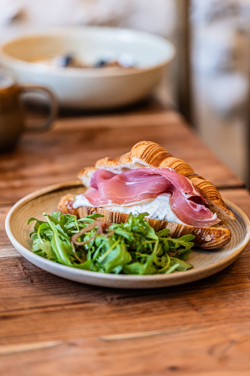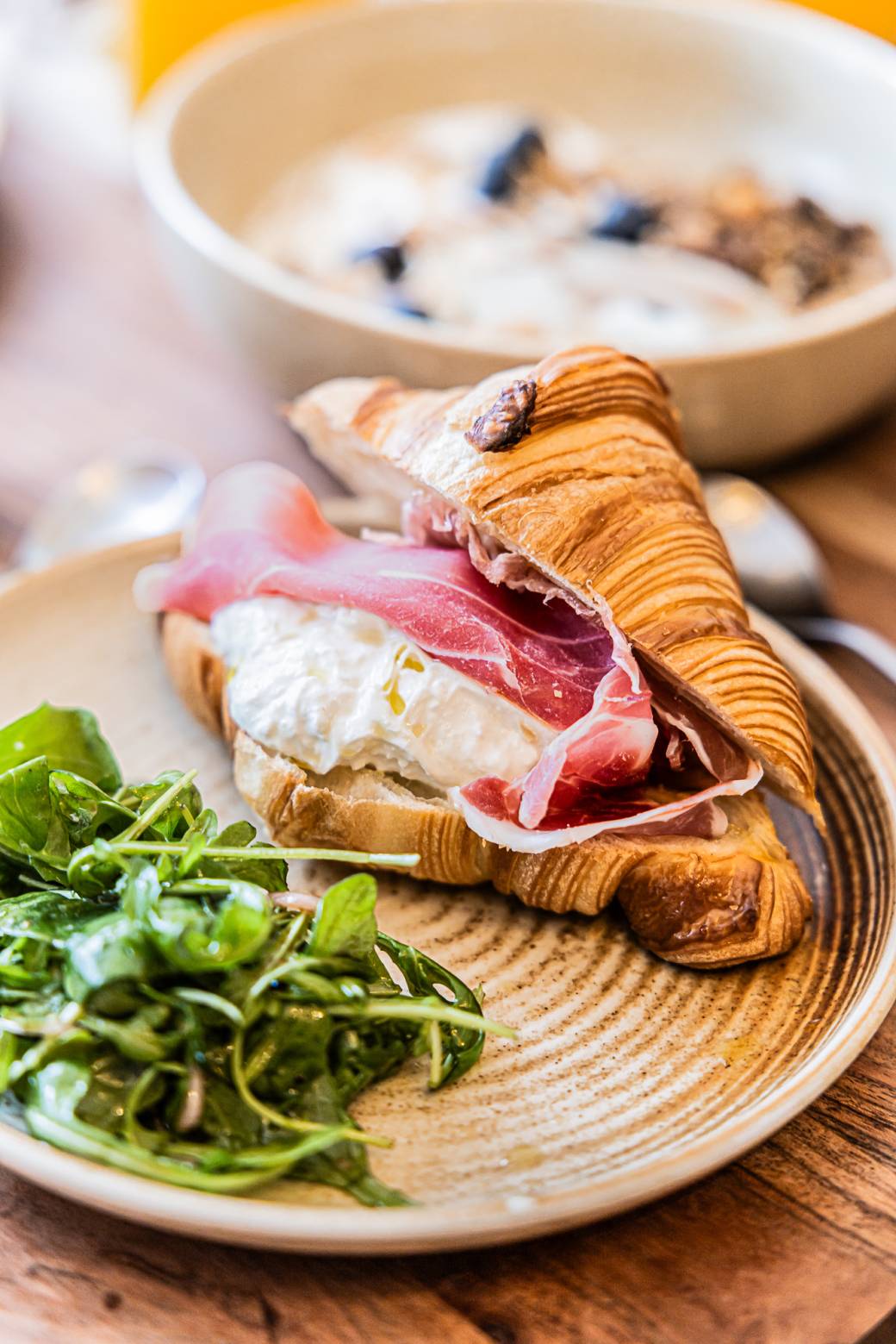 * offre brunch classique : croissant pesto basilic, mozarella buffala, jambon cru)