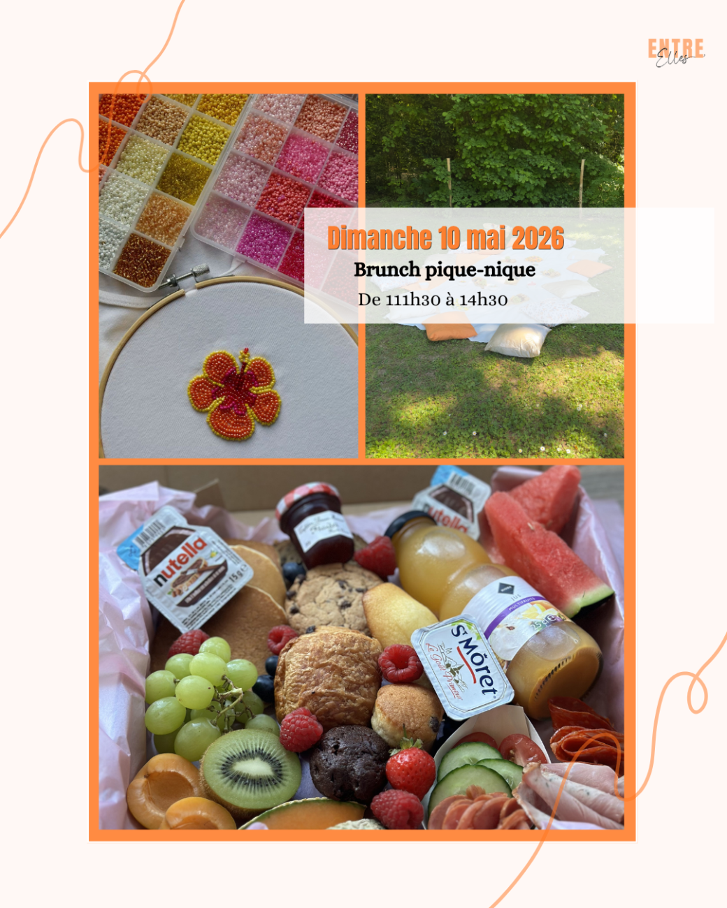 2026-05-10 11:30:00 2026-05-10 14:30:00 Europe/Paris Brunch pique-nique Reservations on : https://www.billetweb.fr/brunch-pique-nique1 --                                        ------------------------------   ⚠️ ATTENTION :   En cas d’annulation, le billet ne pourra être remboursé. Cependant, si tu souhaites l'offrir ou le revendre à une copine / sœur / collègue, ceci est possible. Quoi que tu décides, pense à me tenir informé de ta décision. Merci pour ta compréhension & hâte de te retrouver ! ✨ Park Alfred Wallach, Rue des Sapins, Riedisheim, France Entre Elles
