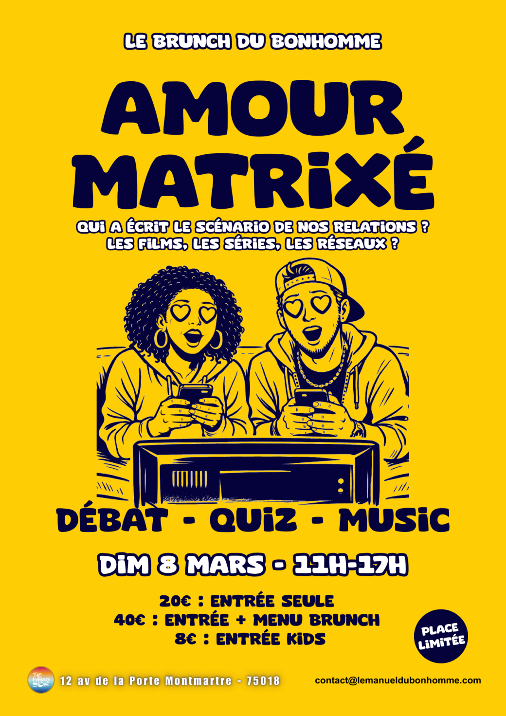 AMOUR MATRIXÉ, c’est un brunch interactif où l’on démonte les modèles amoureux et sociaux que la culture nous a fait consommer.