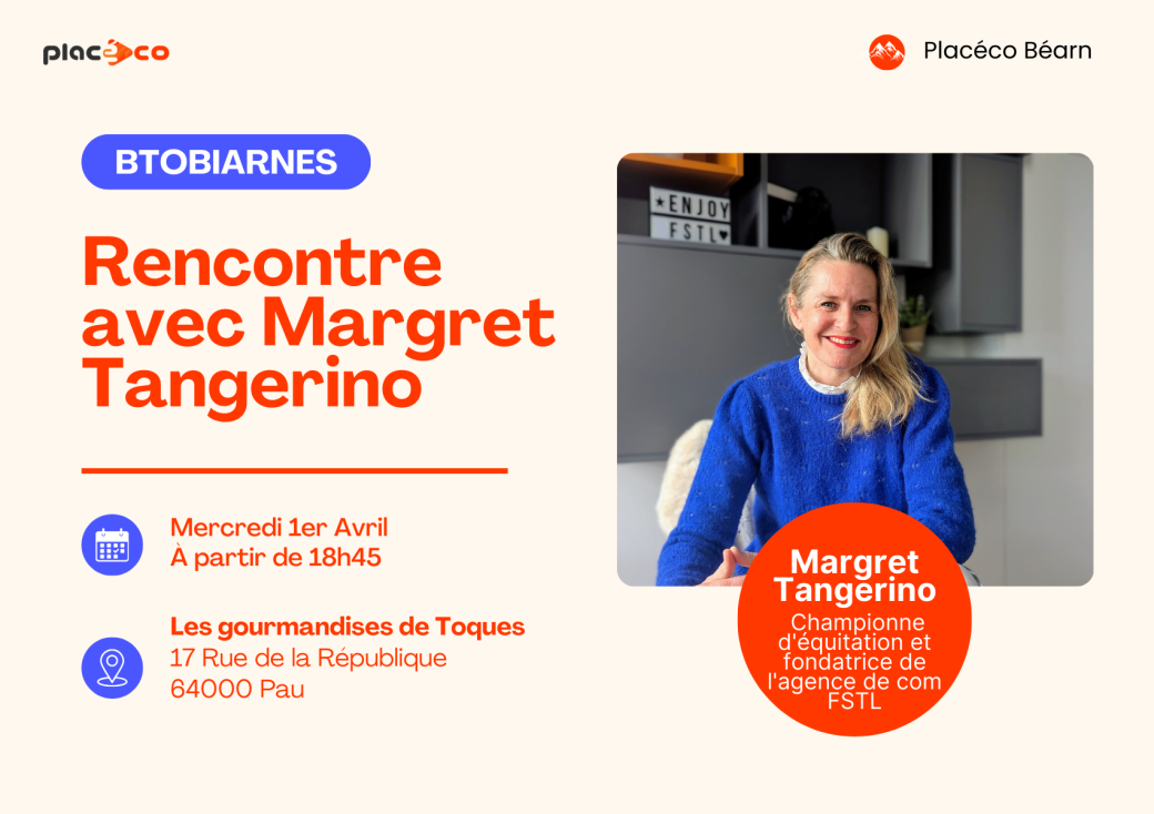 2026-04-01 18:45:002026-04-01 21:30:00Europe/ParisBtoBiarnes #24 - Margret Tangerino, championne d'équitation et fondatrice de l'agence de com FSTLReservations on : https://www.billetweb.fr/btobiarnes-24-margret-tangerino-championne-dequitation-et-fondatrice-de-lagence-de-com-fstl