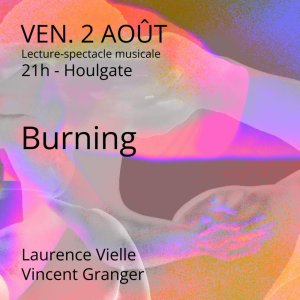 Pour l'écriture de "Burning", un documentaire poétique, un oratorio grave et léger sur la souffrance au travail, Laurence Vielle a recueilli et agencé les paroles d'une chercheuse en sociologie du travail, un DRH, plusieurs personnes victimes de burn-out, un chef d'entreprise, une mère de famille, des enfants. Elle y mêle des matériaux de son œuvre poétique. Le tout pour composer un texte qu'elle scande, qu'elle souffle, avec pour partenaire, comme un corps à corps, la musique de Vincent Granger qui épouse en harmonie et en contre-points, en chants et en battements, tous les mouvements de ces corps livrés au travail.
