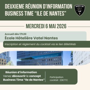 2026-05-06 00:30:002026-05-13 23:30:00Europe/ParisBusiness Time Ile de Nantes du mercredi 06/05/26Reservations on : https://www.billetweb.fr/business-time-ile-de-nantes-du-mercredi-06-05-26