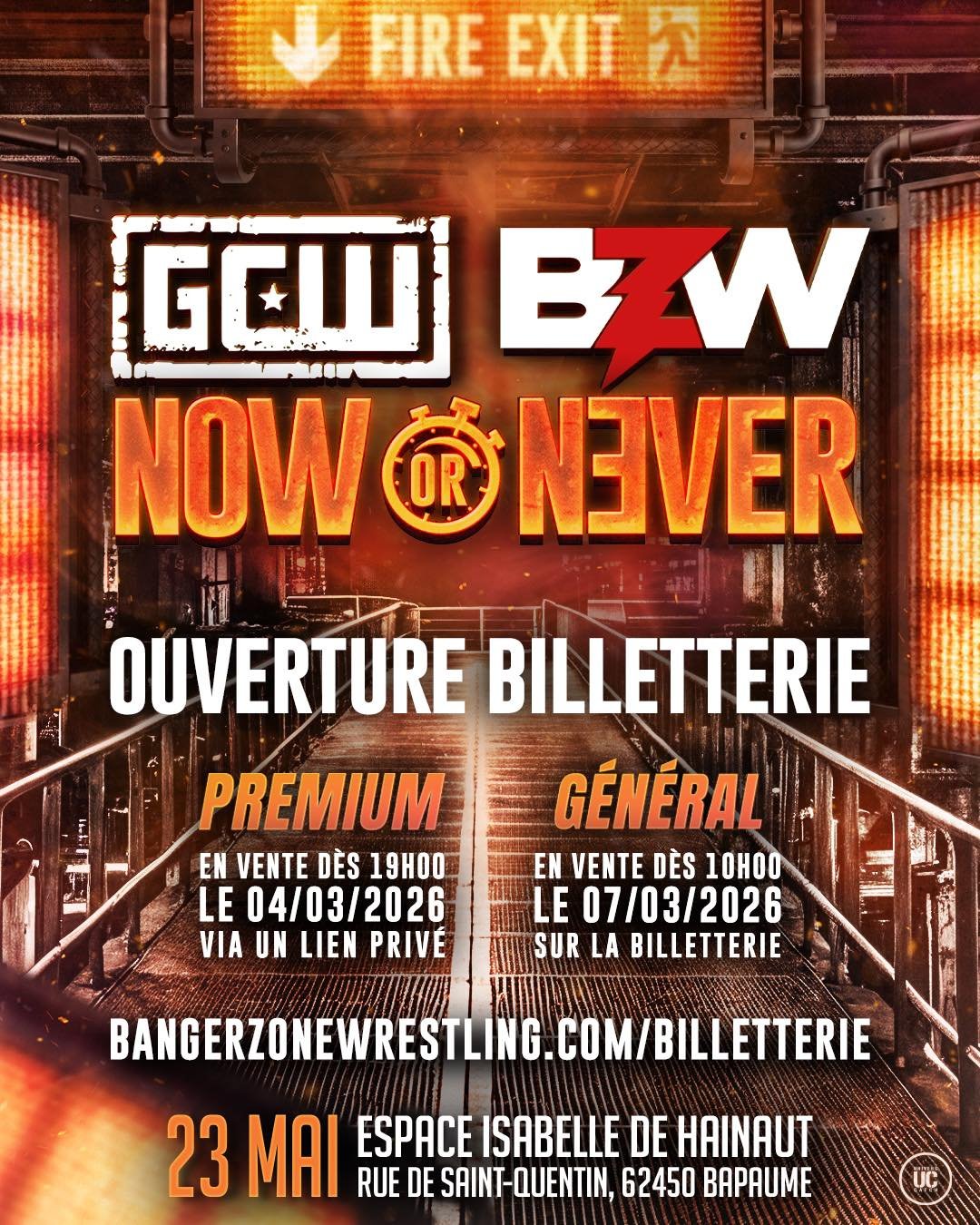 Banger Zone Wrestling et la Game Changer Wrestling vous attendent nombreux le samedi 23 mai 2026 pour Now or Never !