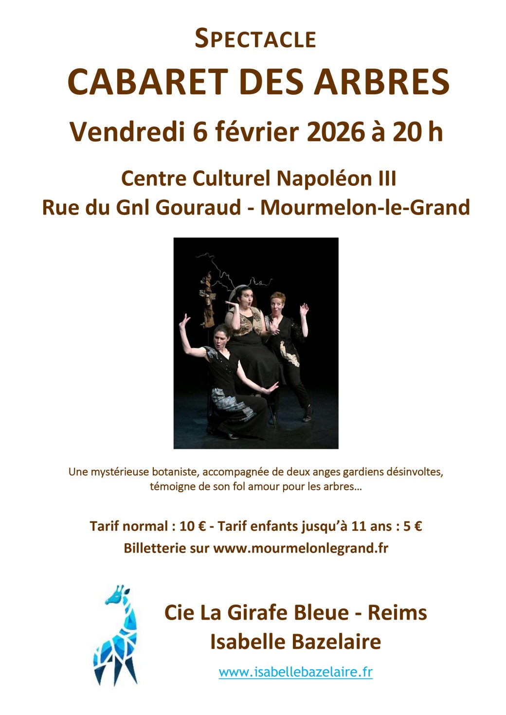 Une mystérieuse botaniste, accompagnée de deux anges gardiens désinvoltes, témoigne de son fol amour pour les arbres. Envolées lyriques enamourées, danse jubilatoire au rythme d’un slam singulier, leçon de botanique à la rigueur excessive, pantomimes, joutes verbales… Les trois complices s’exaltent et s’émeuvent. Une troublante aventure entre extravagance et intimes confessions.