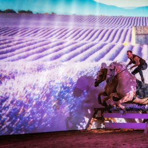 sur un air de fréquence radio, chevaux, acrobates, artistes, voltigeurs vous feront découvrir les terres provençales dans ce nouveaux cabaret équestre.