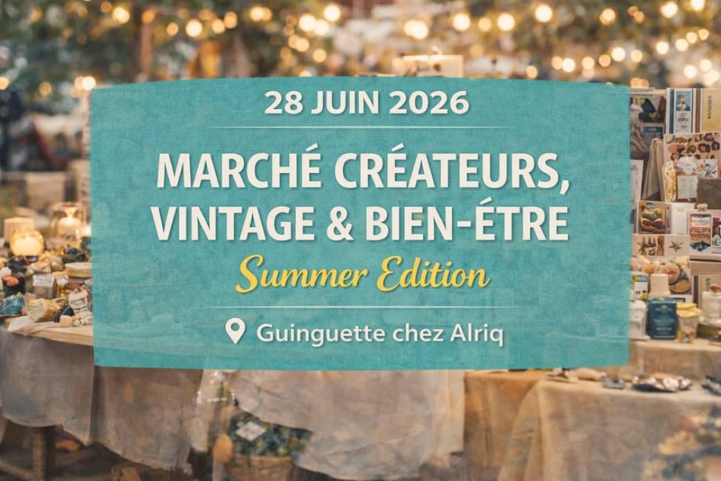 2026-07-19 12:30:002026-07-19 19:00:00Europe/ParisCandidature Marché de Créateurs & Vintage Guinguette Chez Alriq 28 juinReservations on : https://www.billetweb.fr/candidature-marche-de-createurs-vintage-guinguette-chez-alriq-28-juin