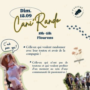 Dimanche 15 septembre viens profiter d’une balade collective organisée par le Canithé, que tu aies un chien ou que tu apprécies simplement leur compagnie, tu es le·a bienvenu·e !
