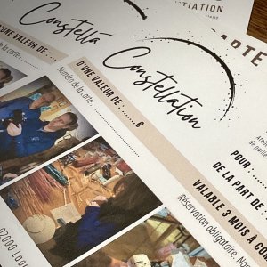 Carte cadeaux valable 3 mois sur les ateliers proposés chez Constellation - Réservation obligatoire.