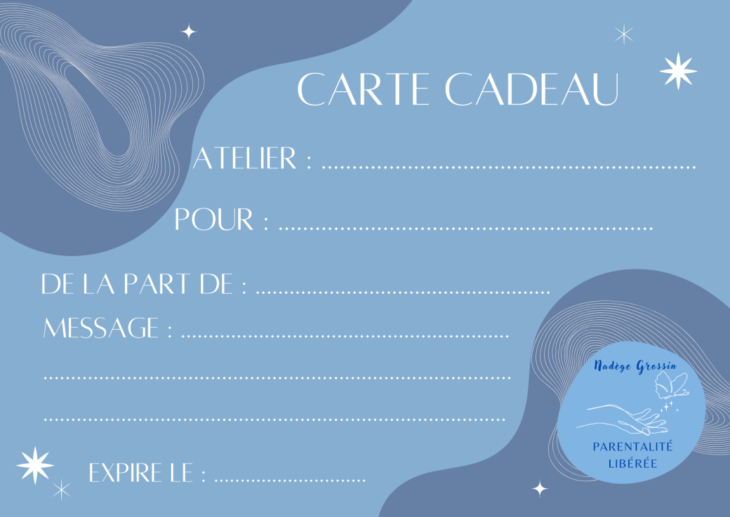 Optez pour la carte cadeau pour un accompagnement à domicile ou un atelier parent enfant.