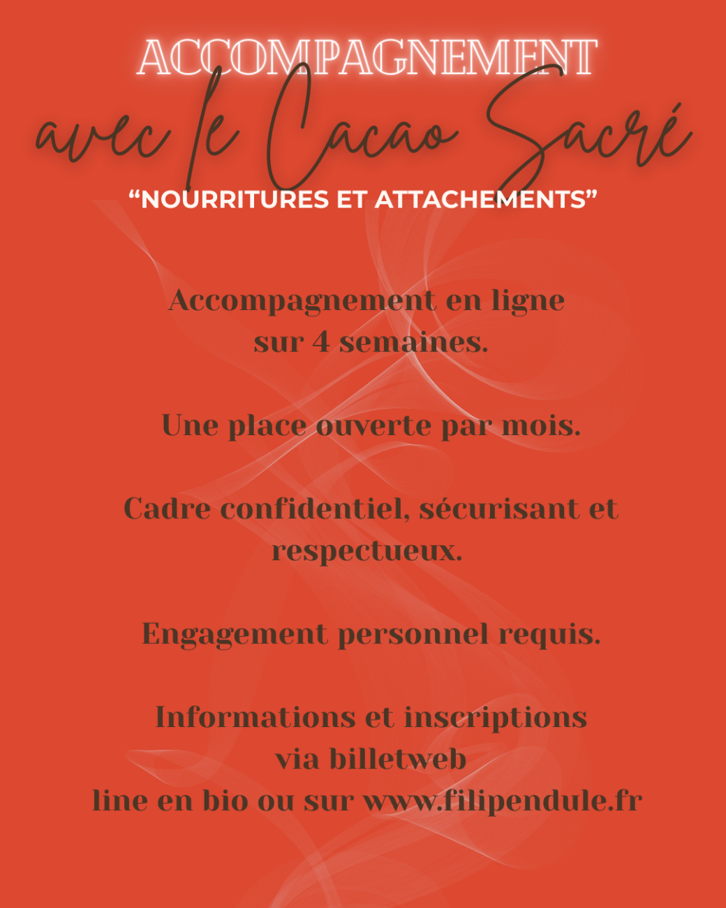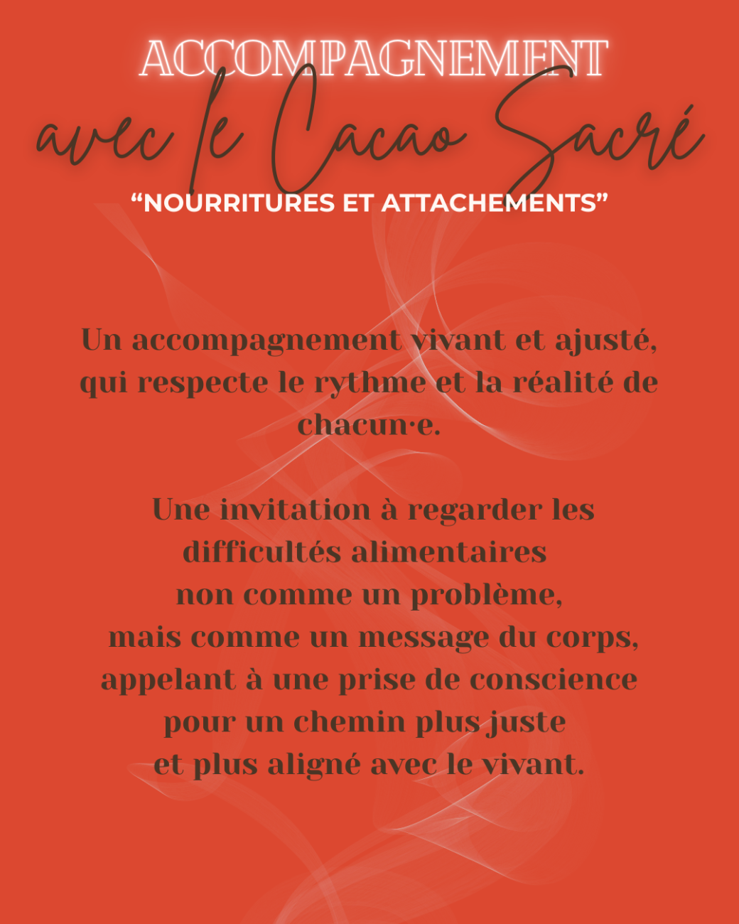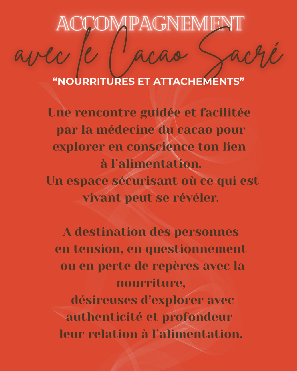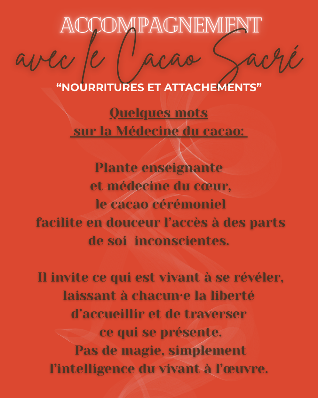 "Nourritures & Attachements" est un accompagnement en ligne de quatre semaines, soutenu par le cacao, plante de l'ouverture du cœur et de la présence.