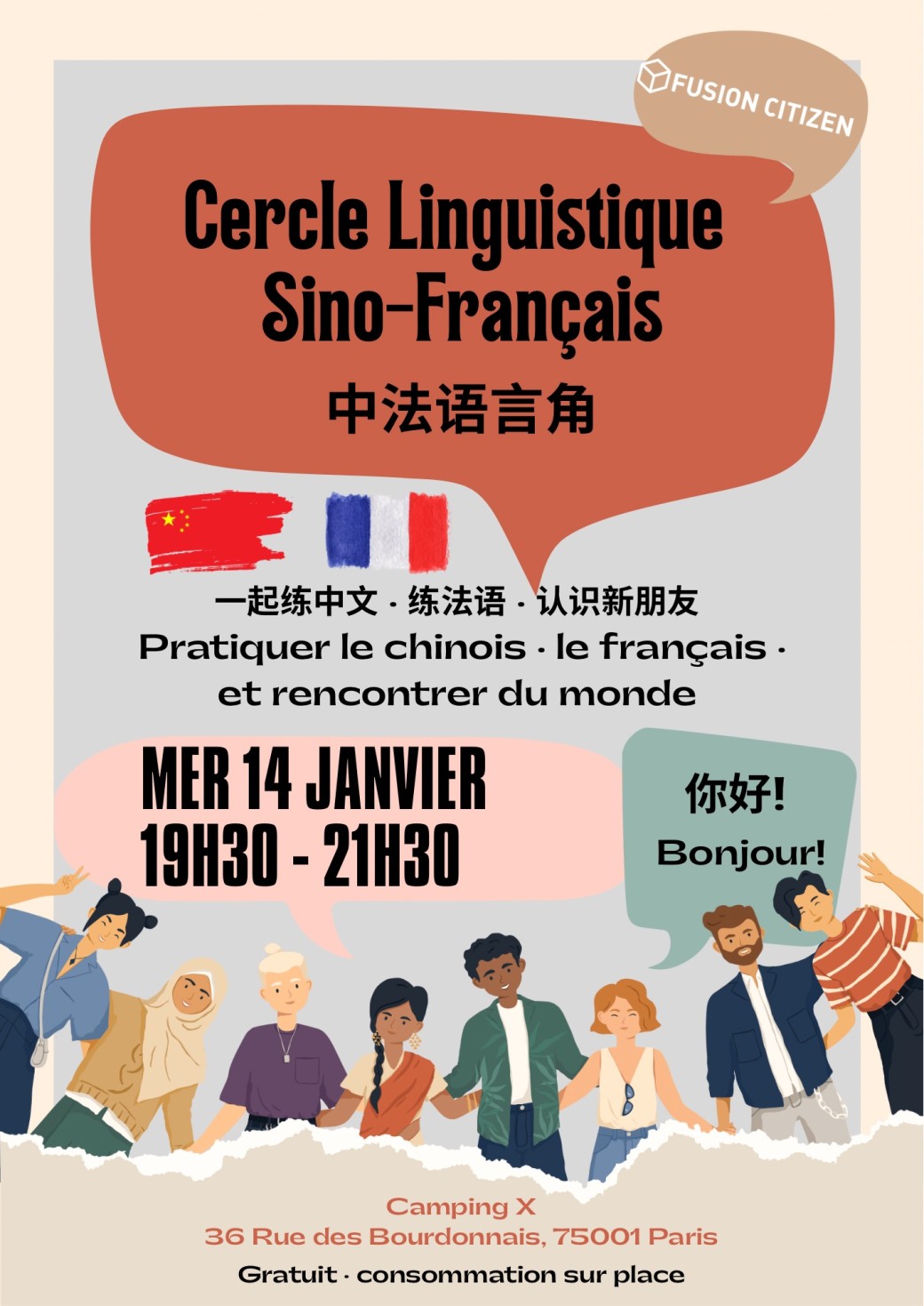 Nous vous invitons à un moment simple et convivial pour échanger librement en français et en chinois, dans une ambiance détendue et bienveillante.