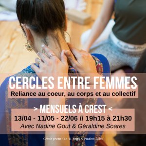 >> Entre Avril et Juin, nous proposons des cercles en soirée les lundis 13 Avril, 11 Mai et 22 Juin de 19h15 à 21h30 à la Salle des Colibris à Crest.