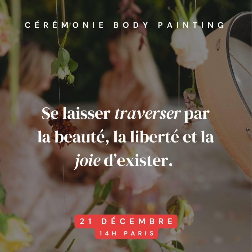 Plonger dans la peau du sacré. Cette cérémonie est une invitation à te laisser peindre par la vie — à travers les couleurs, les gestes, la musique, la peau qui respire.