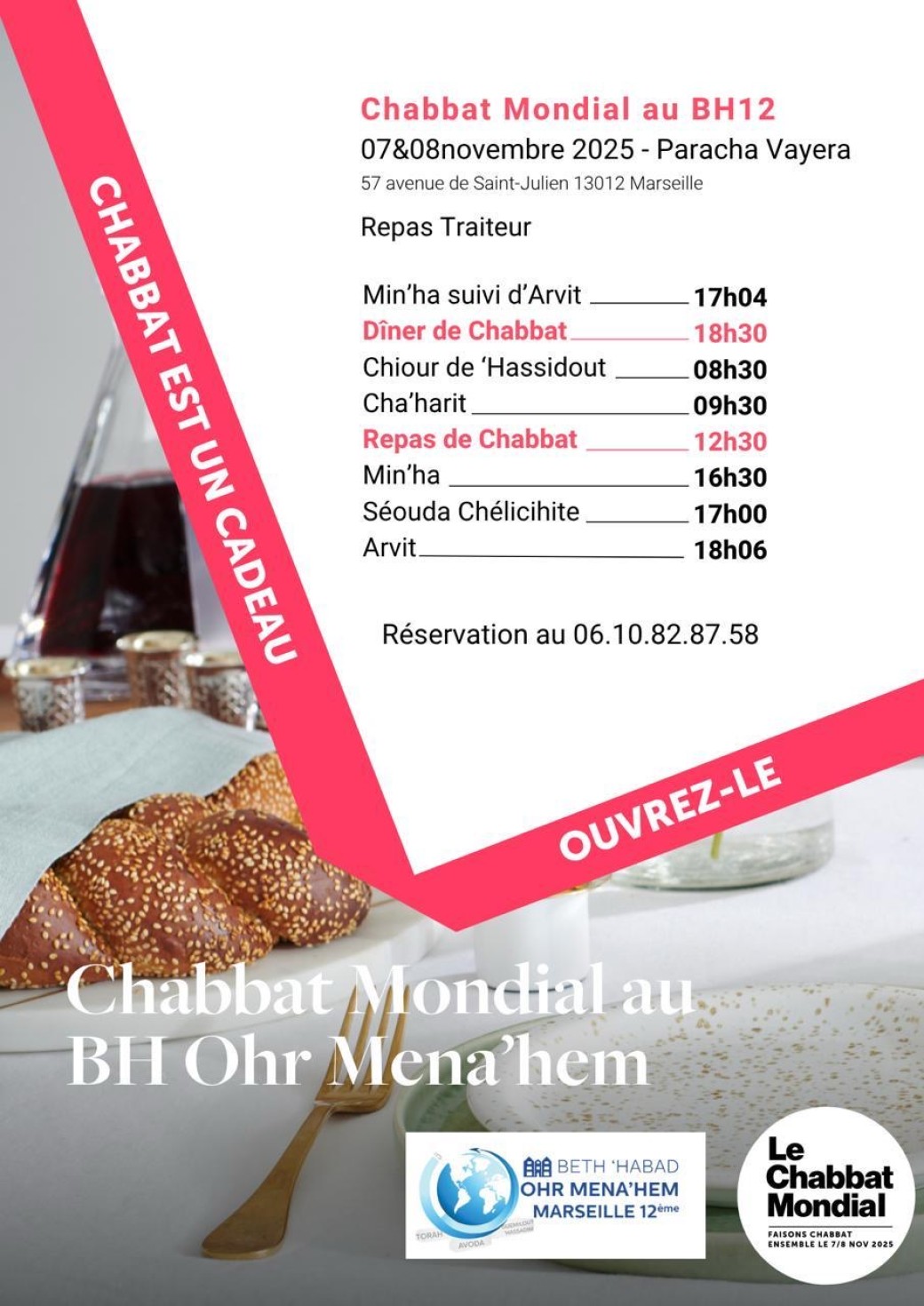 2025-11-07 18:30:002025-11-08 18:10:00Europe/ParisChabbat mondial 2025 mondial bh12Reservations on : https://www.billetweb.fr/chabbat-mondial-2025-mondial-bh12