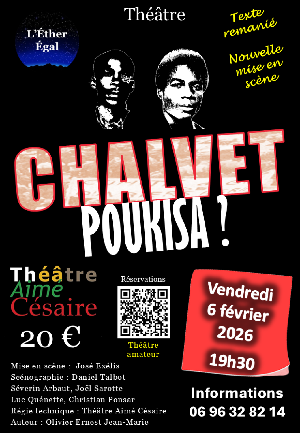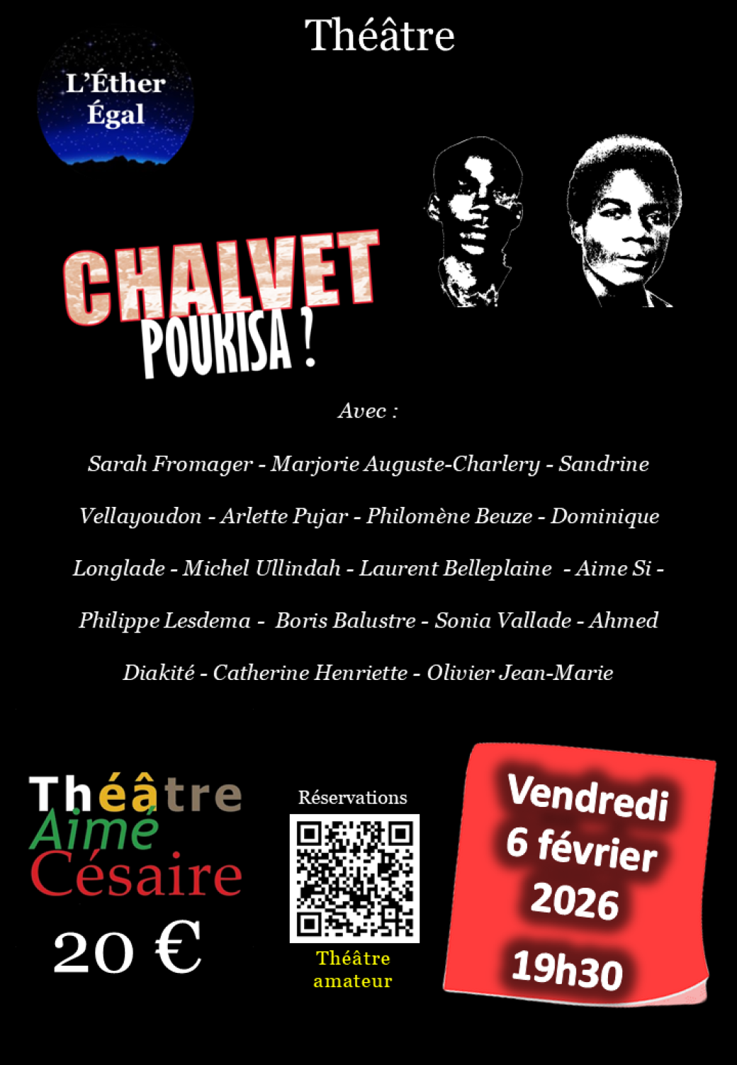 2026-02-06 19:30:002026-02-06 20:50:00America/La_PazChalvet, poukisa ? 2026Reservations on : https://www.billetweb.fr/chalvet-poukisa-2026