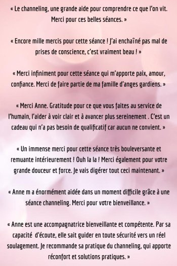 C'est la capacité à servir de canal entre la terre – les humains – et l’au-delà afin de recevoir des messages des Guides ou Êtres de Lumière qui agissent comme une guidance pour l'âme.