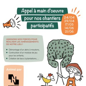 Pour les aménagements de notre futur lieu (espace dédié au bien-être et bien manger), nous avons besoin de main d'oeuvre pour démolir un vieil abri, préparer l'espace, construire du mobilier et des nouvelles infrastructures à l'aide de matériaux de récup', ...