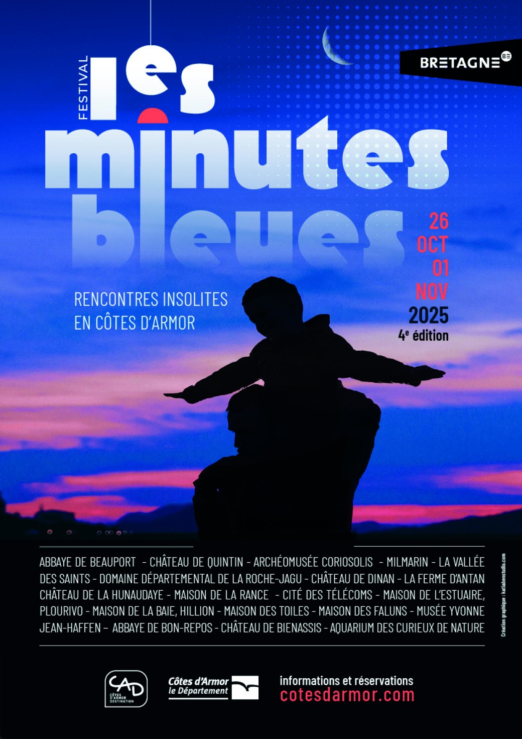 Du dimanche 26 octobre au samedi 1er novembre 2025, la 4ème édition du festival Les Minutes Bleues vous invite à vivre des expériences insolites et inédites, dans plusieurs hauts lieux du patrimoine naturel et culturel des Côtes d’Armor, baignés dans la lumière bleue de l’aube ou du crépuscule.