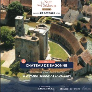 Edifié sur un site gallo-romain, le château de Sagonne et son énorme donjon surplombe un étonnant village médiéval. Bâti aux XIIème, XIIIème, XIVème, XVème et XVIème siècles, le château conserve les souvenirs de nombreux hôtes illustres, notamment : Louis de Sancerre, connétable de France et compagnon d'armes de Bertrand du Guesclin durant la guerre de Cent ans, Gabrielle d'Estrées, amie de coeur du roi Henri IV et Jules Hardouin-Mansart, génial architecte du château de Versailles qui a porté le titre de comte de Sagonne sous la protection du roi Louis XIV.