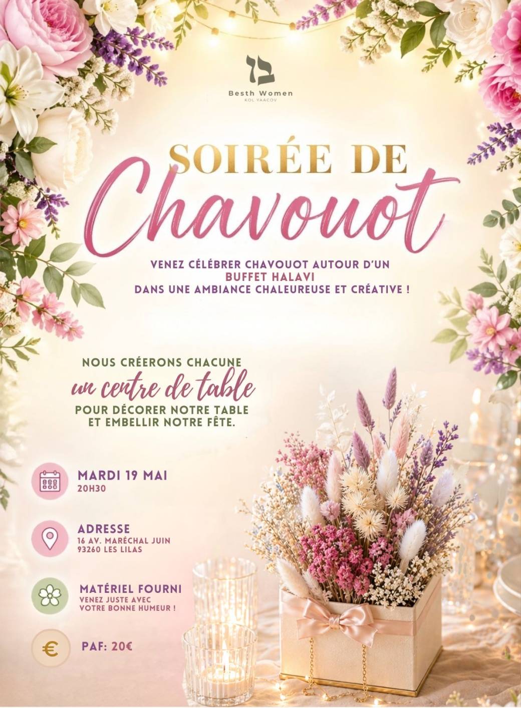 Nous avons le plaisir de vous inviter à une belle soirée de Chavouot