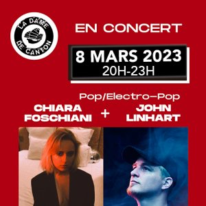 2023-03-08 20:30:00 2023-03-08 23:00:00 Europe/Paris CHIARA FOSCHIANI + JOHN LINHART Reservations on : https://www.billetweb.fr/chiara-foschiani-john-linhart -- Autrice-compositrice et interprète, à 19 ans, Chiara Foschiani a déjà un univers pop bien affirmé. Après un premier EP Electro Pop an anglais, Trouble Maker, sorti en 2021, elle s’apprête à sortir son 2ème opus au printemps 2023. Un ep résolument pop, plus intime et personnel aussi. Chiara y apporte un côté épique, sophistiqué pour donner l’impression à l’auditeur d’être toujours sur un fil. Oscillant entre douceur et force. Chiara aime jouer sur les contrastes entre des paroles fortes et une musique plus dansante sur certains titres. A découvrir en avant-première à La Dame de Canton le 7 février.     John Linhart est un chanteur électro-pop Franco-Britannique. Baigné dans la musique par tradition familiale, il fait très jeune ses débuts sur la scène folk rock avant d’opérer un virage électro en 2016 alors qu’il vit à Londres. Sa voix soul puissante et charismatique confère à sa musique une signature sonore unique.   La Dame de Canton, Port de la Gare, Paris, France La Jonque