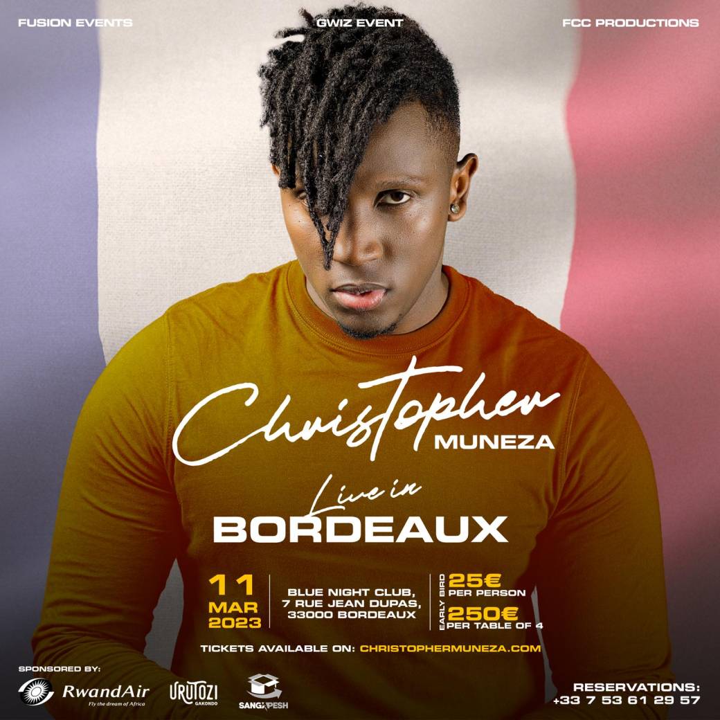 2023-03-11 20:00:002023-03-12 06:00:00Europe/ParisChristopher Muneza Full Live Concert Bordeaux 11 Mars 2023Reservations on : https://www.billetweb.fr/christopher-muneza-full-live-concert-bordeaux-11-mars-2023