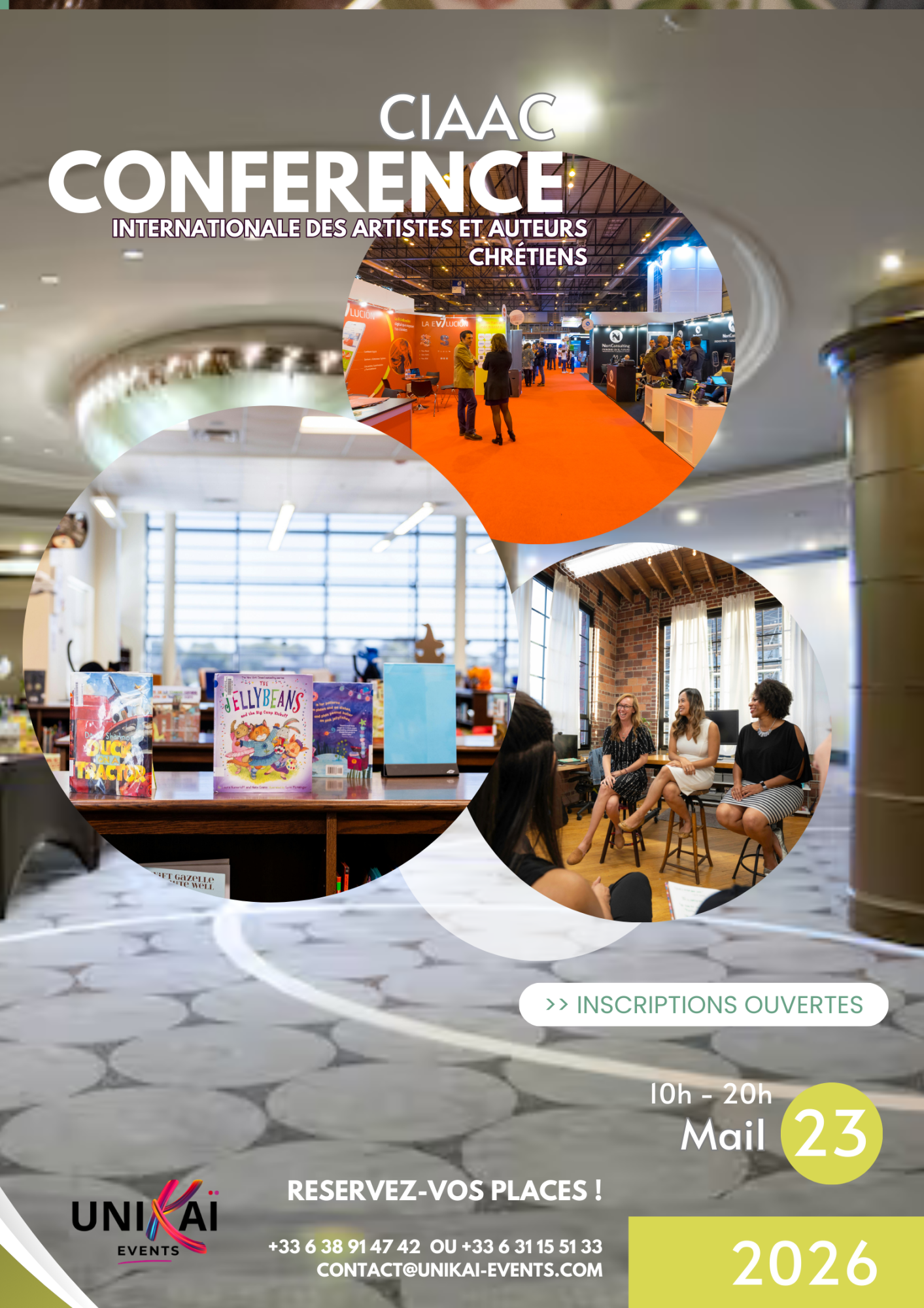 La Conférence Internationale des Artistes et Auteurs Chrétien vous attend le samedi 23 mai 2026, de 10h à 20h, à l’Hilton Paris Charles de Gaulle Airport.
