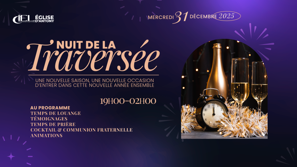 Cette année, pour la Nuit de la Traversée 2025–2026, les Ministères du Centre International pour l’Évangile et la Louange (C.I.E.L) vous invitent à vivre un culte d’ensemble exceptionnel qui nous permettra de terminer l’année 2025 avec Jésus-Christ au centre de nos cœurs.